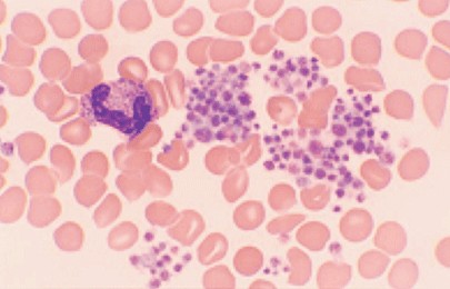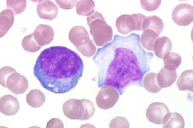 Διεγερμένα λεμφοκύτταρα Παρατηρούνται δύο διεγερμένα λεμφοκύτταρα (reactive lymphocytes), από τα οποία πλέον χαρακτηριστικό είναι το λεμφοκύτταρο με το ανώμαλο περίγραμμα. Τα κλασικά διεγερμένα λεμφοκύτταρα είναι μεσαίου ή μεγάλου μεγέθους κύτταρα, συνήθως με ανώμαλο περίγραμμα. Ο πυρήνας είναι νεφροειδής, λοβωτός, στ...