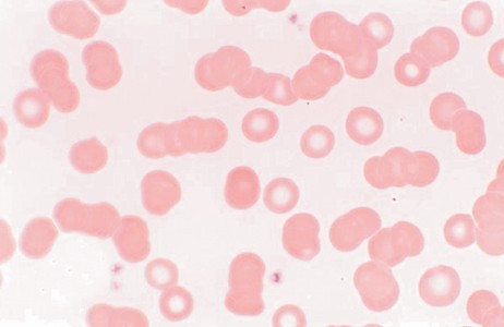 Σχηματισμός rouleaux Παρατηρείται σχηματισμός rouleaux. Τα rouleuax (εν. rouleau) αποτελούν φαινόμενο in vivo και εμφανίζονται στο περιφερικό αίμα ως ομάδες τεσσάρων ή περισσότερων ερυθροκυττάρων με τη μορφή στήλης νομισμάτων. Ο σχηματισμός τους οφείλεται στην επικάλυψη των ερυθροκυττάρων από ανοσοσφαιρίνες ή ινωδογόνο,...